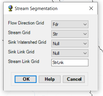 قطعهبندی جریان شبکهای از بخشهای جریان ایجاد میکند که دارای شناسه منحصر به فرد هستند. یک بخش میتواند یک بخش سرشاخه باشد، یا میتواند به عنوان بخشی بین دو محل اتصال بخش تعریف شود. تمام سلولهای یک بخش خاص دارای کد شبکه یکسانی هستند که مختص آن بخش است. شبکه ورودی Sink Watershed اختیاری است و میتوان از آن برای مشخص کردن مناطقی که در مناطق زهکشی سینک قرار دارند، جایی که پیوندهای جریان نباید ایجاد شوند، استفاده کرد. ورودی Sink Link نیز اختیاری است – همچنین میتوان از آن برای مشخص کردن مناطقی که پیوندهای جریان نباید ایجاد شوند، استفاده کرد. این دو شبکه را میتوان با تابع Flow Direction with Sinks ایجاد کرد. شبکه Sink Link را میتوان با شبکه Stream Link تولید شده توسط تابع فعلی با استفاده از تابع Combine Stream Link و Sink Link ترکیب کرد تا یک شبکه Link ایجاد شود که هم انشعابات رودخانه ها و هم بخش های فروچاله (سینکها) را نشان دهد.
